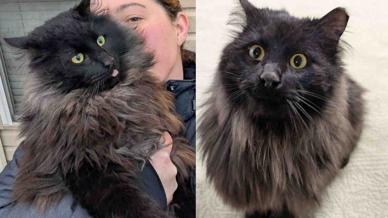 About a year ago, a long-haired black cat appeared in a colony, timid and hungry. "He just blended in with the existing cats, but you could tell he was not part of their group," Kelsey told Love Meow.
